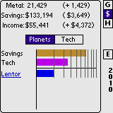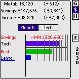 - Spending Screen - push this button to see the spending screen for both the planets and the tech levels