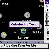 In auto-play, or if you select the menu-item Play One Turn For Me, a message will be displayed on the screen while the computer is calculating your move for you. In this mode, the computer will manage all aspects of the game for you, for that turn.