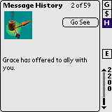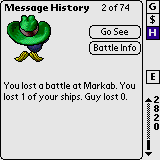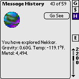 An example of a history message where the user can jump to the planet about which the message pertains.