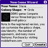 If you are still playing a DEMO game, once you leave the About screen you will see the New Game Wizard. The New Game Wizard provides information for the first-time user on the various parameters that will contribute to the setup of their game. In the registered version, this screen would provide you with additional options to configure. Click the Create button to start the game.