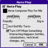 The auto-play feature allows the player to select whether the computer should calculate moves for