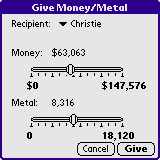 The Give Money/Metal dialog.