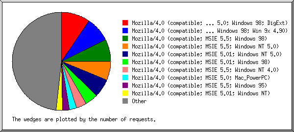 | 3 | 0.50% | 11 | 0.46% | 0.14 | 0.40% | Mozilla/4.61 [en] (Win98; I) |