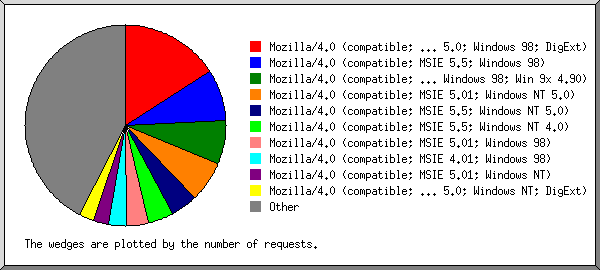 | 2676 | 17.07% | 5359 | 16.08% | 18.97 | 13.94% | Mozilla/4.0 (compatible; MSIE 5.0; Windows 98; DigExt) |