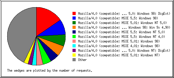 | 41 | 0.24% | 79 | 0.22% | 0.18 | 0.13% | Mozilla/4.08 [en] (WinNT; I ;Nav) |