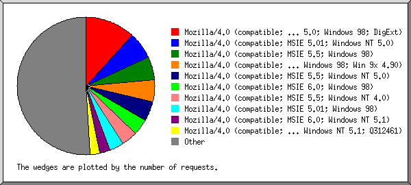 | 463 | 1.09% | 1150 | 1.17% | 5.89 | 1.53% | Mozilla/4.0 (compatible; MSIE 6.0; Windows 98; Q312461) |