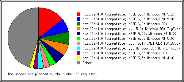 | 322 | 0.78% | 727 | 0.76% | 1.93 | 0.72% | Mozilla/4.0 (compatible; MSIE 5.01; Windows NT) |