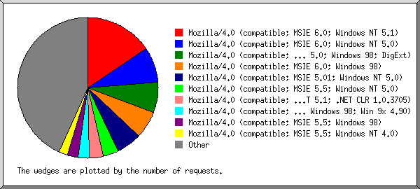 | 175 | 0.45% | 406 | 0.46% | 1.20 | 0.48% | Mozilla/4.0 (compatible; MSIE 4.01; Windows 98) |