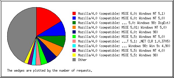 | 62 | 0.22% | 162 | 0.25% | 0.47 | 0.25% | Mozilla/4.0 (compatible; MSIE 6.0; Windows NT 5.0; .NET CLR 1.0.3705; .NET CLR 1.1.4322) |