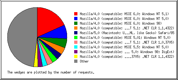 | 96 | 0.44% | 1156 | 0.62% | 7.50 | 0.57% | Mozilla/4.0 (compatible; MSIE 6.0; Windows NT 5.0; .NET CLR 1.0.3705; .NET CLR 1.1.4322) |
