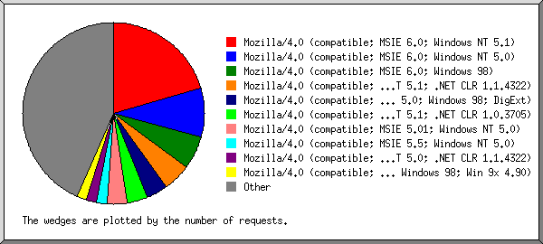 | 1436 | 8.46% | 11413 | 8.75% | 52.12 | 7.04% | Mozilla/4.0 (compatible; MSIE 6.0; Windows NT 5.0) |