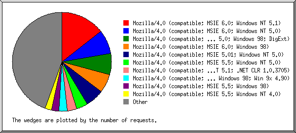 | 568 | 0.22% | 1340 | 0.23% | 3.90 | 0.23% | Mozilla/4.0 (compatible; MSIE 6.0; Windows NT 5.1; .NET CLR 1.1.4322) |